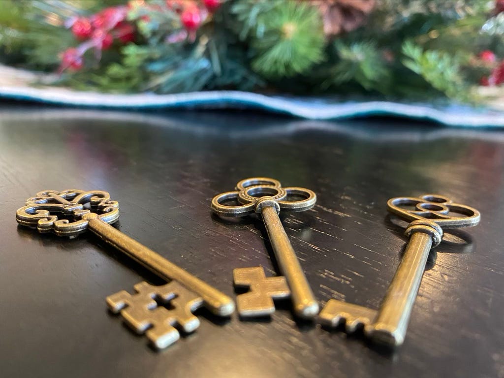 To help students remember them (and if I’m honest, to remember me and the course), I give them each a replica of an antique brass key.